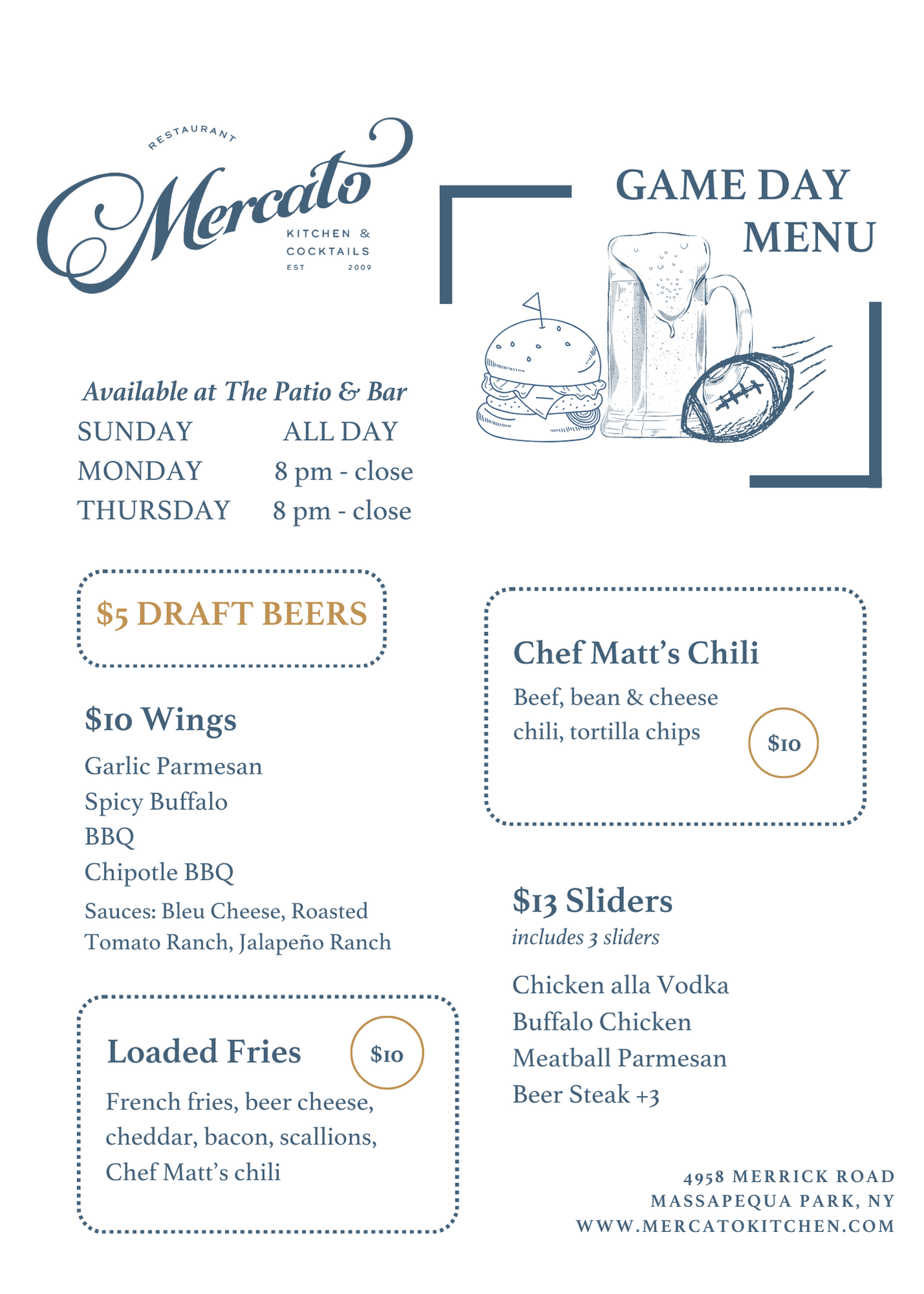- Playoff Game Day Menu